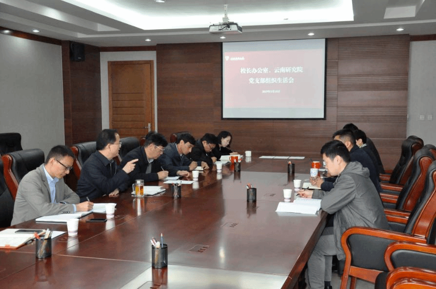 2019年3月15日上午,校长办公室、云南研究院党支部召开专题组织生活会民主评议党员,校党委副书记、校长蒋永文同志,校党委委员、副校长刘坚同志以普通党员身份参加会议。