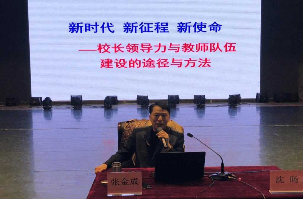张金成校长首先通过对习近平总书记在庆祝改革四十年的讲话精神进行解读,引导学员们认识当下和未来的形势,以“315”概念传授了“三力一心五阶梯”管理要素。整个讲座过程中,张校长结合多年的教育教学管理经验,通过丰富的教育理论和教育案例,生动风趣地阐释了他对新时代管理者与教师应具备能力的认识,解读了校长领导力与教师队伍建设的途径与方法,让1000名学员深深的认识到作为管理者、骨干教师在“新时代新征程新使命”下的新思考:从管理走向治理、从教学走向学习、从课堂走向课程。丰富翔实的事例、条分缕析的结构、深刻精锐的观点,让学员们在激情之余更好地静下心来反思自己的教育教学。讲座接近尾声,张校长鼓励全体学员带着快乐的心情去看待教育,更好地生活、更好地工作、更好地做教育。