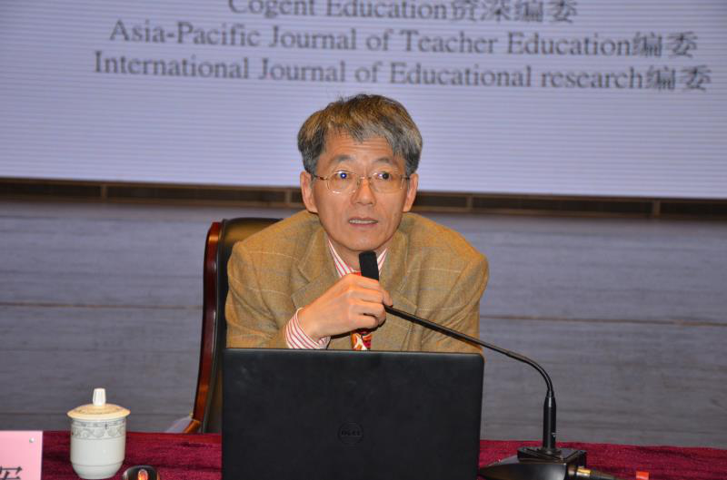 姜添辉教授通过米德“个体自我概念是社会互动的产物”的观点引出讲座主题,从名校魅力与应试教育、工具理性思维与创新能力的落差、专业发展的新元素与途径三个方面详述创新能力对教师核心素养的重要性。他循序渐进、层层剖析,通过案例分析,指出机械化思维方式难以符合知识经济社会的创新需求,应将创新能力纳入教师专业发展的内涵中。在论述教师专业发展的新元素和途径中,姜添辉教授还运用理论分析与实际生活中的社会学案例相结合的方式,提出五大途径:一是以反思途径发展自我能力;二是洞察社会结构的规则以发挥能动性;三是将教室转变为文化论坛;四是进行社会情境取向的对话;五是发挥课堂实践的集体智慧,为学员在教师专业发展实践中指明了方向。在最后的互动环节,姜添辉教授就学员们提出的“中西方教育之区别”、“如何加强学生心理建设”等问题进行了耐心、细致的解答,谦和的态度和幽默的语言赢得现场阵阵掌声。