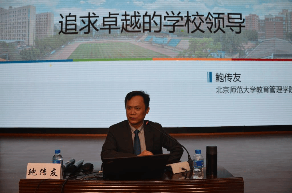 4月26日上午,云南省“万名校长培训计划”第二期名家讲座第16讲在云南师大附中呈贡校区体育馆举行。教育部小学校长培训中心副主任、北京师范大学校长培训学院常务副院长鲍传友教授,以《追求卓越的学校领导》为主题,为云南省“万名校长培训计划”第二期参训学员授课。讲座由伟德国际1946bv官网副教授、硕士生导师、云南教育干部培训中心专职副主任龙登丽主持。