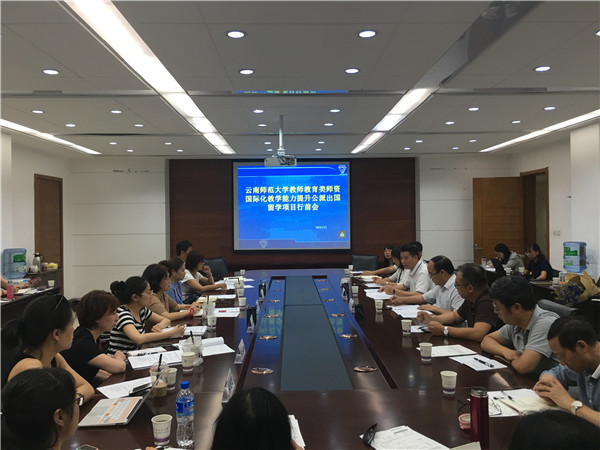 5月21日下午,我校在呈贡校区第一会议室召开了“教师教育类师资国际化教学能力提升公派出国留学项目”行前会议。该项目为我校首次以成班形式派出的公派出国留学项目,来自我校16个学院、1个部门,从事教师教育的20名一线教师,将于今年5月28日赴加拿大维多利亚大学进行为期三个月的学习。省教育厅对外交流与合作处龙微副处长、对外交流中心兰雁副主任、维多利亚大学代表陈永玲主任,学校刘宗立副校长、武友德副校长,国际合作与交流处、教务处领导和相关工作人员以及20名访学教师参加了行前会议。会议由国际处黄瑛处长主持。