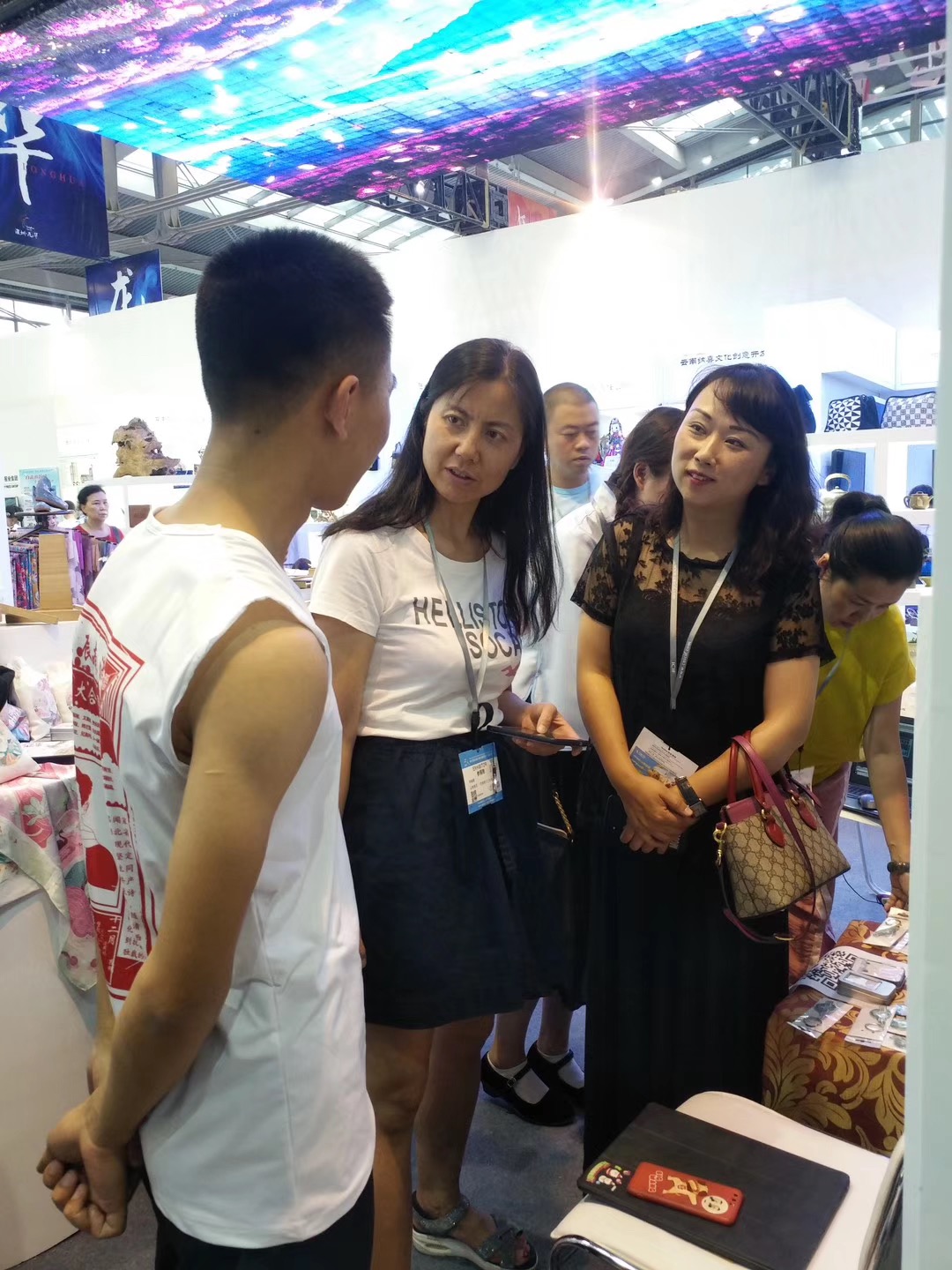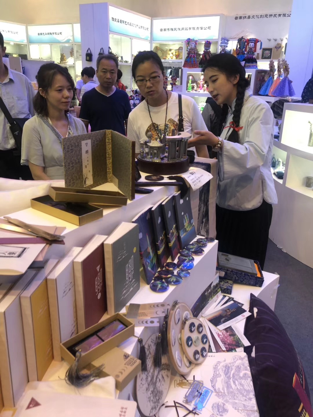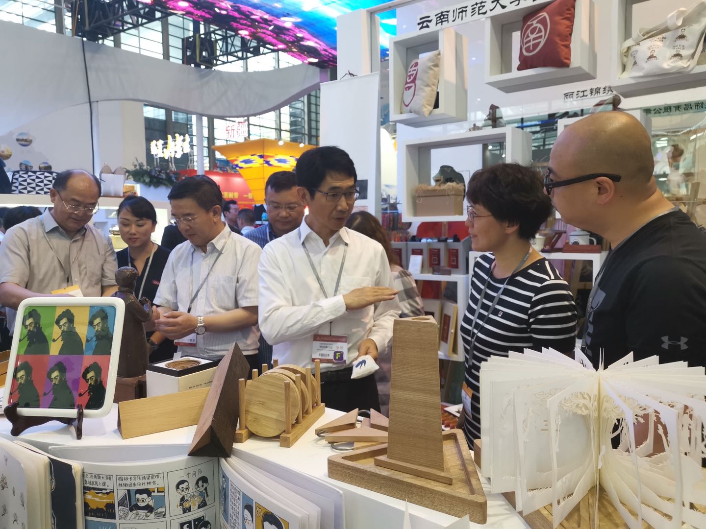 集中展示西南联大精神的深刻内涵和文化的深厚底蕴,成为此次文博会云南馆的关注焦点。5月18日上午,云南省委常委、云南省委宣传部部长赵金,云南省委宣传部常务副部长罗杰,省文化和旅游厅党组成员、副厅长孙炯等领导一行来到西南联大文创展区。赵金部长对伟德国际1946bv官网美术学院充分发挥专业特点、多层次多视角深入挖掘西南联大的文化品格,创意设计具有西南联大精神的文创产品,积极传承西南联大精神,给予了充分肯定。赵金部长指出,要把西南联大文化和精神通过文创设计作品创作的形式宣传推广到全省、全国的大学生中,让收藏在展柜里的文物,书写在古籍里的文字都活起来,向世界传播西南联大文化,讲述西南联大历史和故事,提升中国文化的对外吸引力和影响力。伟德国际1946bv官网要更深入地挖掘和解读“刚毅坚卓”的校训,用更具时代特色的方式予以呈现和弘扬。
