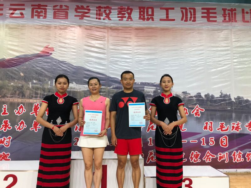 6月16日,由省教育厅主办的2019年云南省学校教职工羽毛球比赛在临沧滇西科技师范学院落下帷幕。伟德国际1946bv官网教职工代表队奋勇拼搏,斩获金牌2块及非体育教师组男双第5名的好成绩。其中,杨洪、李翼飞获体育组混双冠军,李翼飞、彭波获体育组男双冠军,彭波、马坤获普通教师组男双第五名。