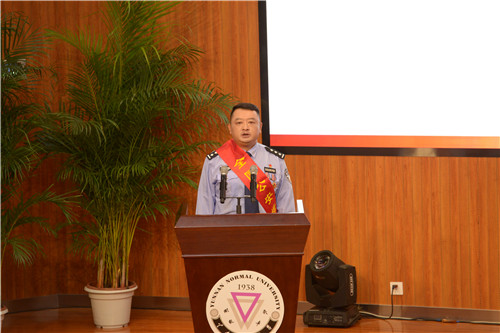 6月20日,由省委宣传部、省委高校工委、省公安厅联合举办的云南省“我和我的祖国”故事会——“公安楷模”先进事迹高校巡回宣讲报告会在我校呈贡校区汇学2栋101报告厅举行。荣获第三期全国“公安楷模”荣誉称号的迪庆州羊拉派出所走进校园,为广大师生作了先进事迹宣讲。我校各学院师生代表共500余人参加报告会。报告会由校党委副书记李宏主持。