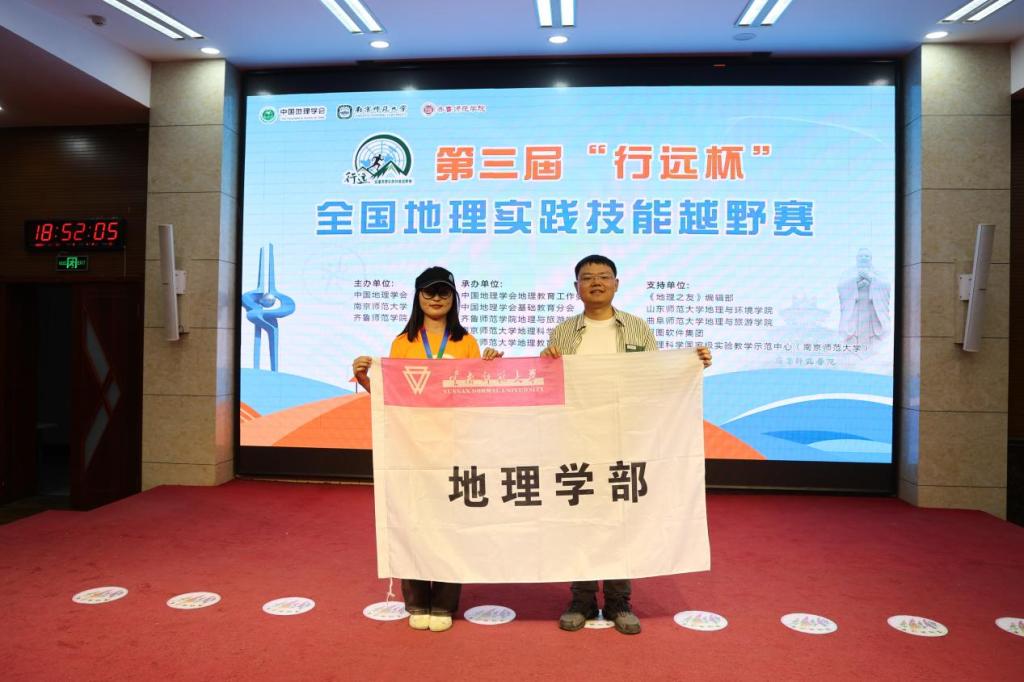 5月17日至18日,由中国地理学会、南京师范大学、齐鲁师范学院联合主办的第三届“行远杯”全国地理实践技能越野赛决赛在济南市举办。赛事吸引了包括中国人民大学、兰州大学、南京师范大学等154所学校1110名选手参赛。我校地理学部2021级地理科学专业王怡荣获一等奖,指导教师为张超、吴映梅。