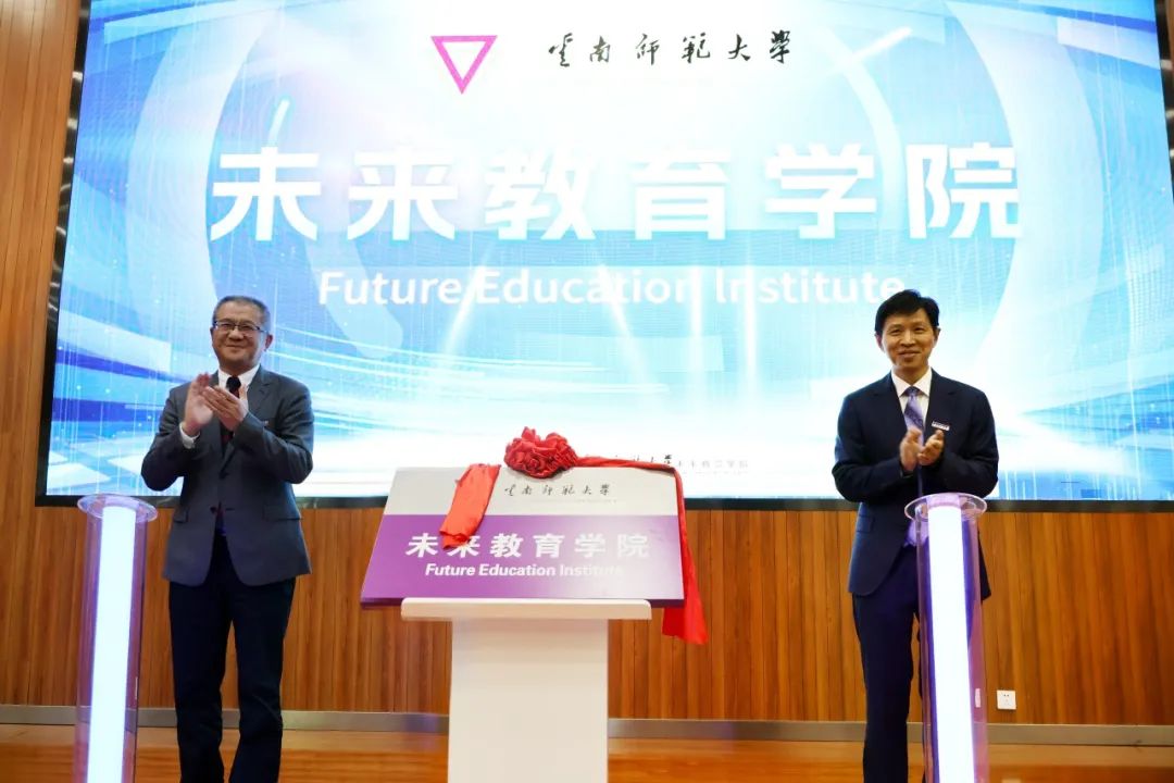 张祖武与胡金明共同为未来教育学院揭牌,并发布未来教育学院网站。