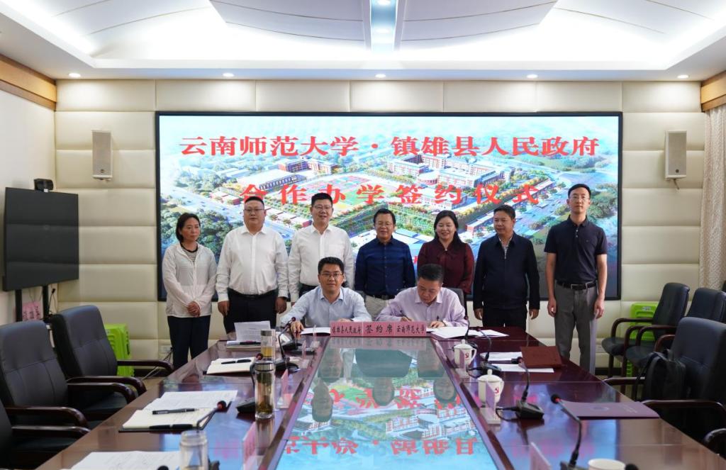 6月12日,伟德国际1946bv官网与镇雄县人民政府在镇雄县签署合作办学协议,进一步深化校地合作,携手共建一所高起点、高标准、高品质的公办九年一贯制学校——德馨学校。我校副校长孟庆红,基础教育集团直属学校党委书记曾东风,镇雄县委书记肖顺兴,县委副书记、县长杨绪春,县人大,县政协有关领导出席仪式。杨绪春和曾东风代表双方签订合作办学协议。