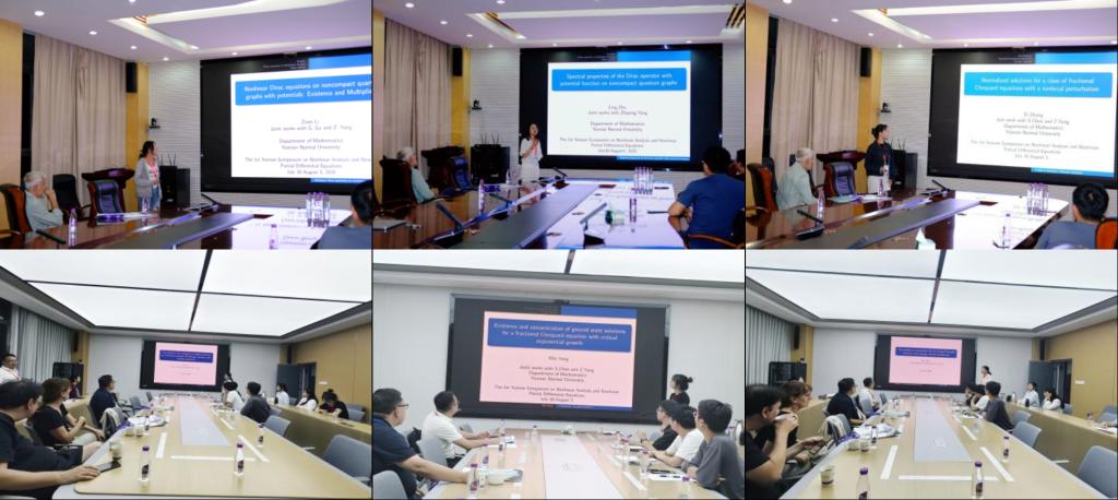 揭牌仪式后,举办了为期3天的第一届云南非线性分析与非线性偏微分方程国际会议。英国巴斯大学delPino教授、美国罗格斯大学李岩岩教授、美国约翰霍普金斯大学Yannick Sire教授、罗马大学Massimo Grossi教授、罗马大学Angela Pistoia教授作报告,内容涵盖超曲面的对称性、退化方程解的几何测度、临界增长的椭圆系统等偏微分方程领域的核心内容。