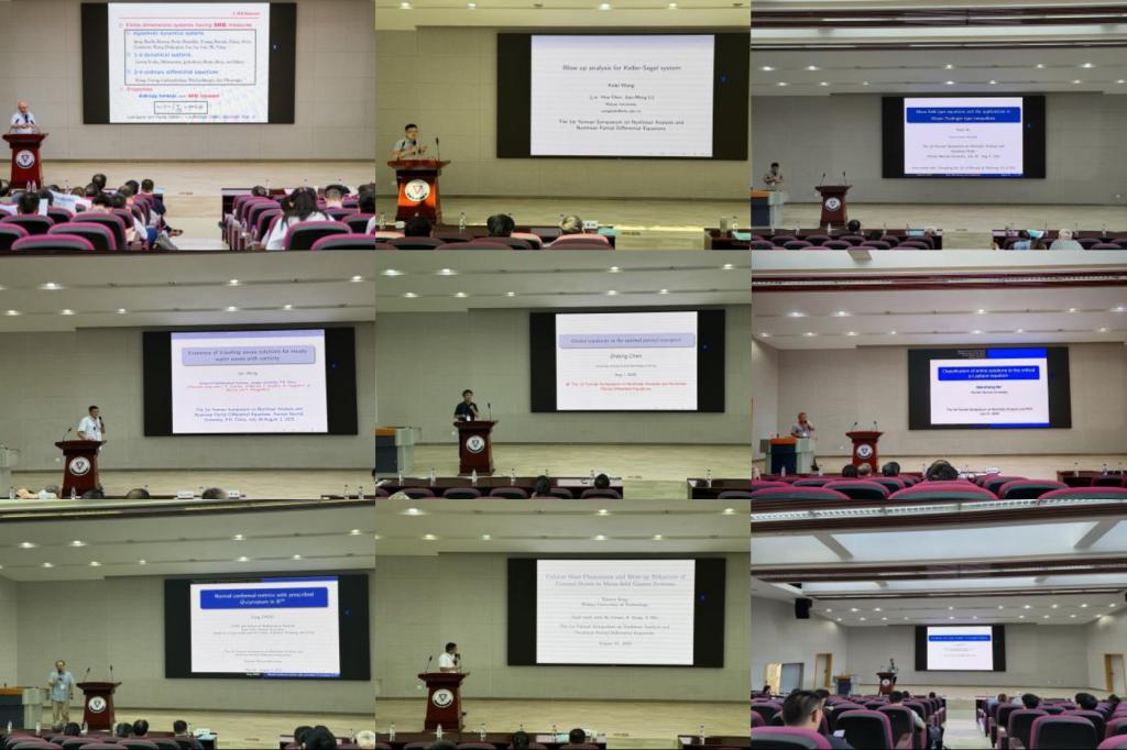 四川大学吕克宁教授,中国科学技术大学麻希南教授、陈世炳教授,北京大学蒋美跃教授,华东师范大学周风教授,华中师范大学郭玉劲教授、罗鹏教授,南开大学段华贵教授,北京师范大学李海刚教授,武汉大学王克磊教授、敖微微教授,武汉理工大学曾小雨教授,江苏大学王俊教授,北京航空航天大学戴蔚教授,浙江师范大学徐甜教授,湘潭大学孙林林教授,中南大学胡烨耀教授,中国科学院数学与系统科学研究院孙黎明副研究员,伟德国际1946bv官网欧乾忠教授,香港中文大学吴轲博士等国内外专家学者带来了26场高水平学术报告。主题覆盖无穷维动力系统、Hardy-Mazya-Sobolev不等式、Stokes方程、Bose气体的基态、对偶Minkowski问题、Keller-Segel系统等偏微分方程领域的热点领域。