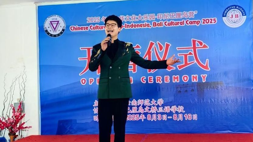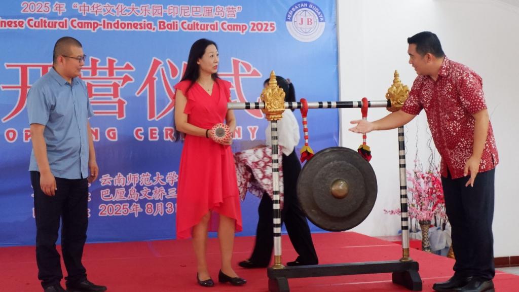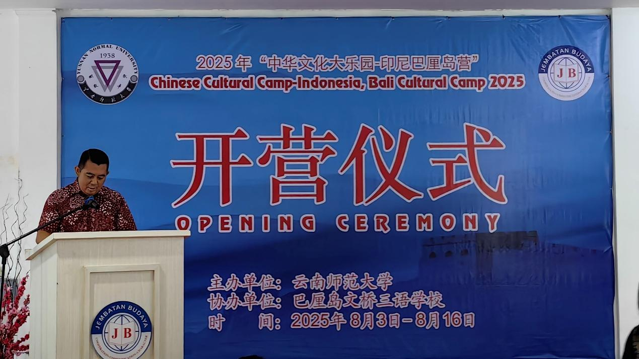 8月4日,由伟德国际1946bv官网主办、印尼巴厘岛文桥三语学校承办的2025年“中华文化大乐园——印度尼西亚巴厘岛营”在印尼文桥三语学校开营。中国驻登巴萨总领事馆副总领事朱宇,文桥三语学校董事长江睿、总经理江道云,伟德国际1946bv官网中华文化大乐园教师团队以及文桥三语学校的青少年近500人参加了开营仪式。