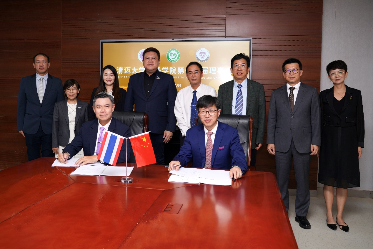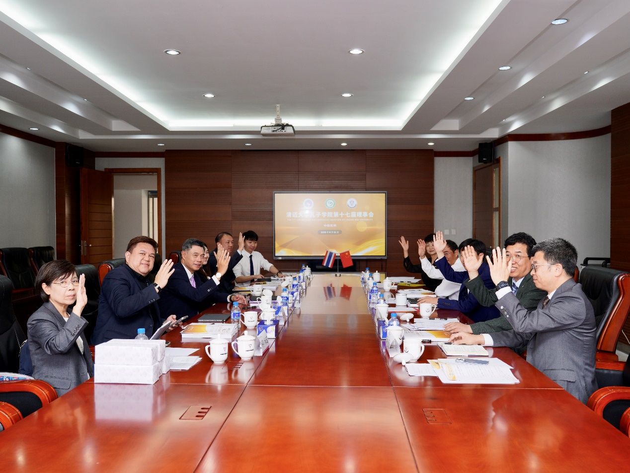 8月11日上午,清迈大学孔子学院第十七届理事会在我校召开。校长胡金明、副校长陈飞、国际中文教育学院院长王秀成、对外合作交流处处长杨叶华,清迈大学校长彭拉·习班迪蒙坤、副校长塔雅努帕•阿楠塔纳、校长助理沃拉甘亚·卟拉帕塔娜、国际处处长卡蒂玛•帕西玉喜,以及清迈大学孔子学院中方院长连晨、泰方院长李雄英参加会议。会议由陈飞主持。