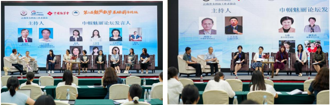 8月9日晚上,论坛专门开设女性科研工作者交流专场,云南省女科技工作者协会、伟德国际1946bv官网心理健康教育咨询中心参与了活动,活动由席南华院士、周向宇院士、王友德研究员、王宝富教授共同主持。来自清华大学、西安交通大学、湘潭大学、河北师范大学等高校的12位女性学者围绕“科研创新与性别平等”“女性学术生涯发展路径”等议题分享经验,呼吁社会各界为女性数学工作者创造更包容的发展环境。