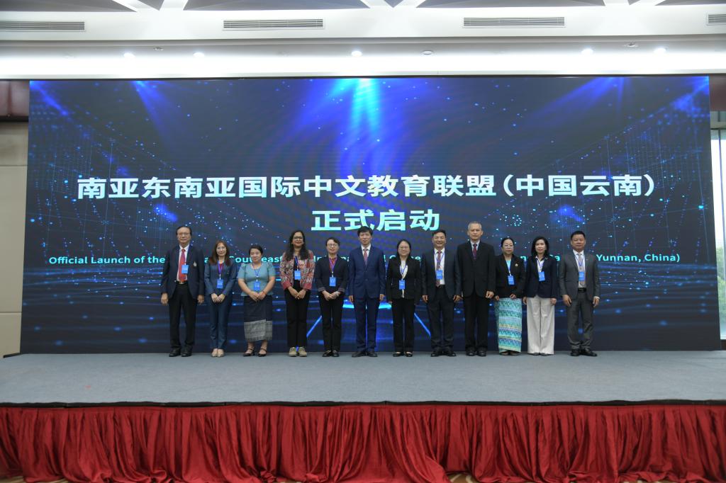 与会嘉宾共同启动“南亚东南亚国际中文教育联盟(中国云南)”。