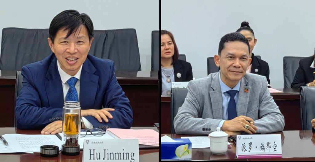 10月21日,泰国清莱皇家大学校长派罗·端那空一行访问我校并续签合作备忘录。校长胡金明,对外合作交流处,相关学院主要负责人参加活动。