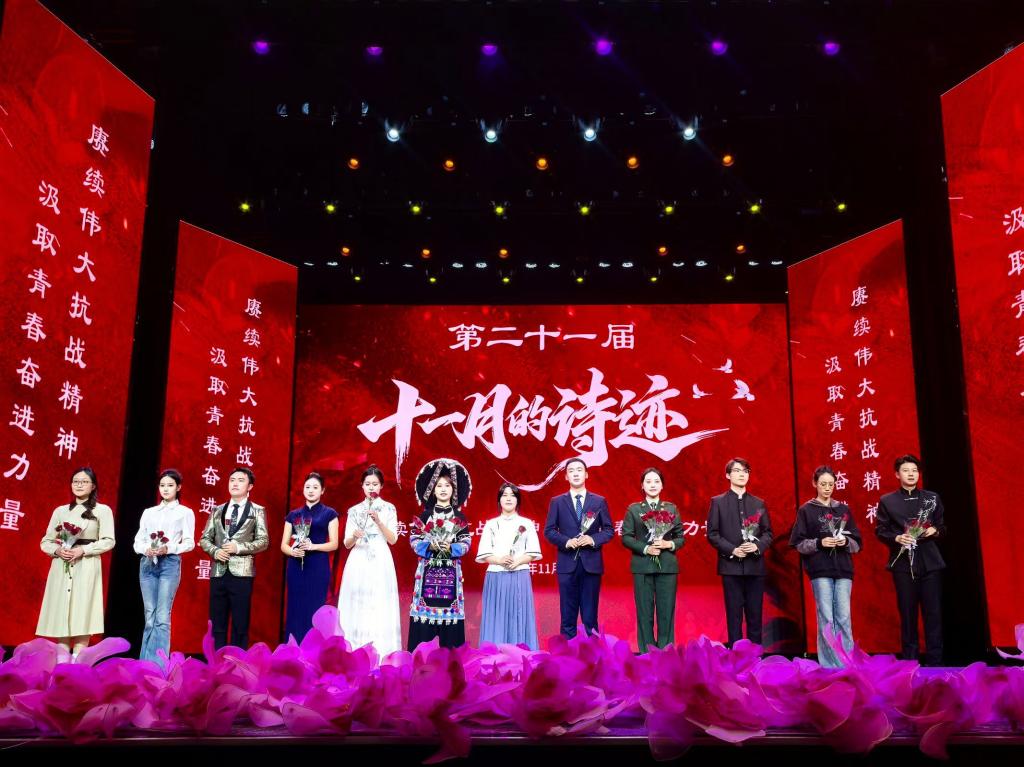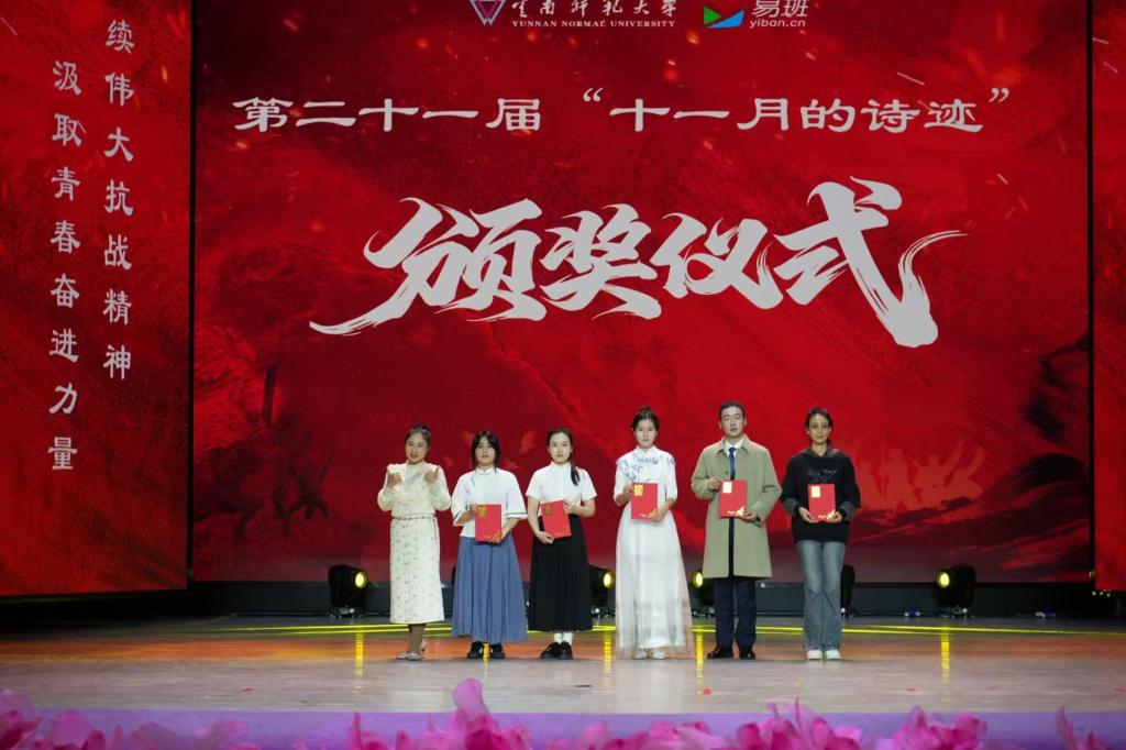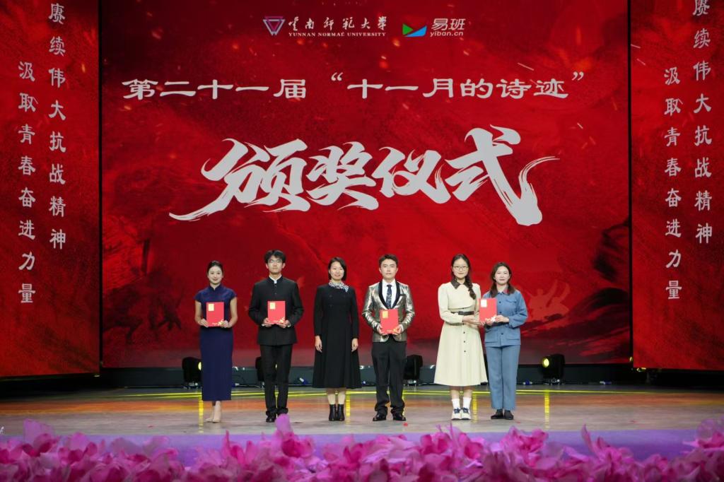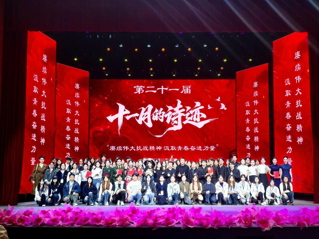 11月14日,由学生处主办、易班学生工作站承办的“赓续伟大抗战精神汲取青春奋进力量”第二十一届“十一月的诗迹”诗歌朗诵大赛决赛在我校呈贡校区明德5号楼演播厅举行。