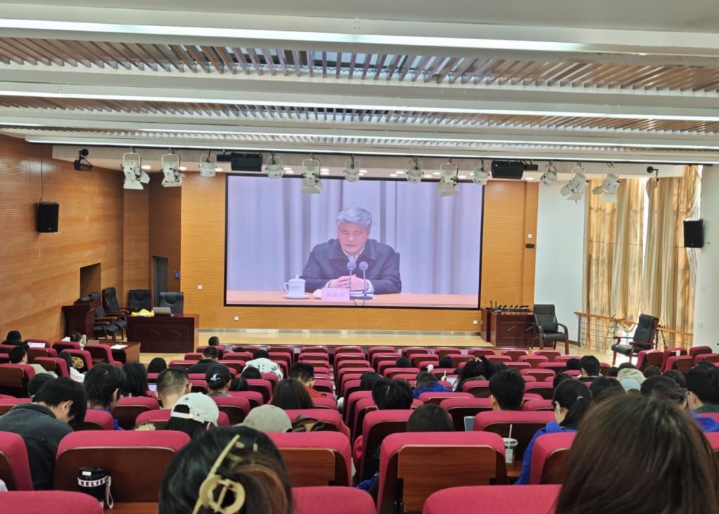 12月4日下午,学校组织开展2025年党员基本培训第三次集中大课,共同学习由中央党校(国家行政学院)分管日常工作的副校长(副院长)谢春涛教授主讲的《中国共产党与中华民族伟大复兴》视频课程。校党委书记张祖武主持并讲话。全校8000余名师生党员在呈贡校区主课堂以及55个分课堂参加学习。
