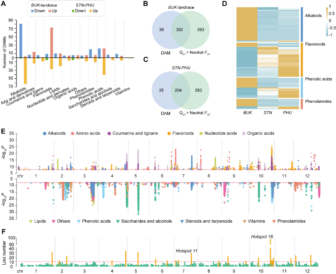 研究通过mGWAS,鉴定出2046个与568种代谢物相关的遗传位点,首次系统性地绘制了马铃薯薯块中化学成分与基因之间的关联地图,发现了三种主要的调控模式: