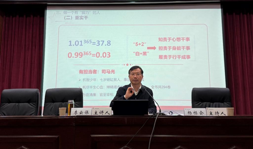 报告中,李云保围绕新时代青年成长成才需要锤炼的核心能力,系统阐述了“四力”内涵:一是涵养眼力,做到看得准、看得透、看得远;二是锻炼脑力,做到认识清、思路明、举措实;三是夯实脚力,做到沾泥土、重实干、解难事;四是提升笔力,做到有储备、有方法、有钻劲。他鼓励同学们以恒心与勇气开路,将艰苦奋斗融入日常,在服务国家发展的实践中经风雨、长才干,努力成长为可堪大用、能担重任的栋梁之材。