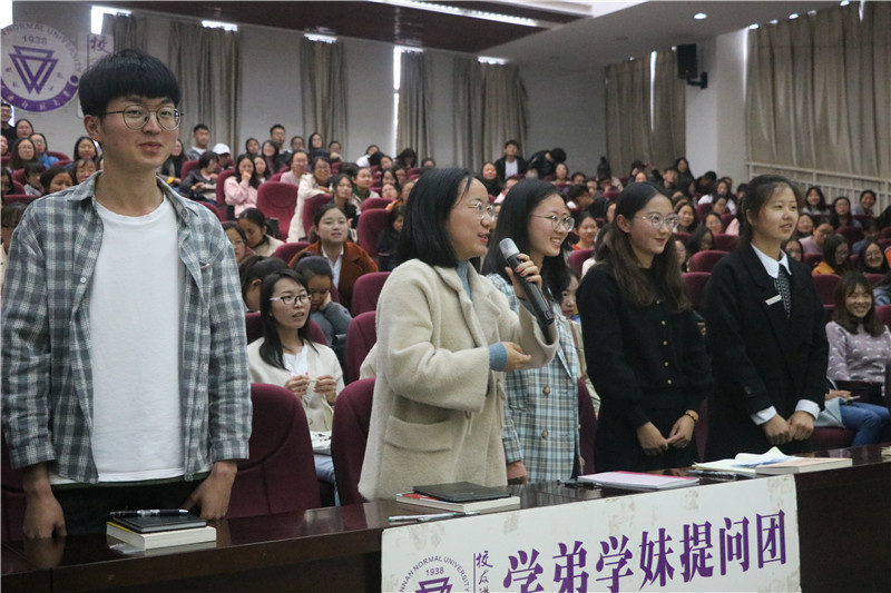 接着,温泉校友作了“初路——致即将步入社会的毕业生”的讲座。他结合自己人生经历,为学生们分享了创业故事,重点为毕业生讲述了如何选择一个职业并谈了他多年的公益之路。关于择业,他指出行业的发展、企业的发展和主管领导这三个因素是毕业生择业重点考虑的方向。在公益事业中,他支持了一批又一批的学生完成学业和实现梦想,分享了一个又一个的温馨故事。讲座中,学弟学妹代表团跟温泉总经理进行了互动交流。最后,同学们向温泉校友赠送了校徽,并合影留恋。