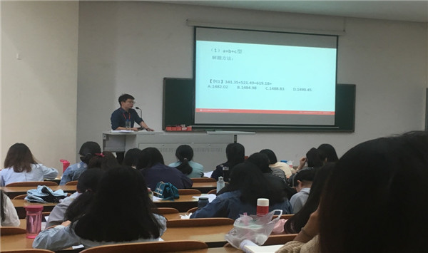 雷凤伟用诙谐幽默语言对《行政能力测试》中常识判断、资料分析、数量关系、言语理解与判断推理等类型试题进行了讲解,梳理数量资料题型、公式和解题技巧,讲解生动形象,寓教于乐,许多同学受益匪浅。