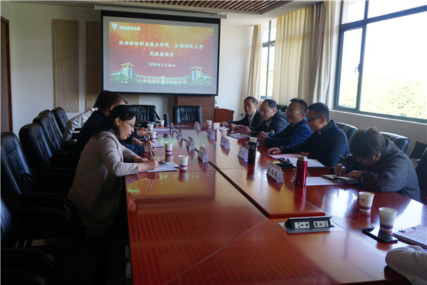 2019年3月26日上午,陕西财经职业技术学院工会主席、基建办主任王爱军带领总务处、宣传部、团委负责人一行4人到访我校,参观呈贡主校区并就校园文化建设、基础建设、绿化美化等内容与我校进行了座谈。我校校办、宣传部、校团委、基建处、后勤处有关负责人参加了交流座谈。校办副主任夏百川主持会议。