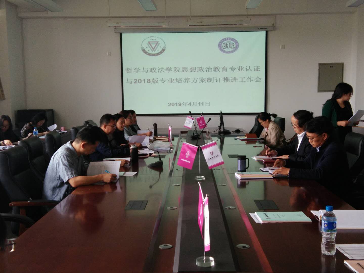 4月11日下午,哲学与政法学院在明德一号楼416会议室召开思想政治教育师范类专业认证与2018版本科专业培养方案制订工作推进会,学院全体党政领导、各系负责人、院办公室、教务办、学工办、政治学系全体教师及工作人员30余人参加会议。