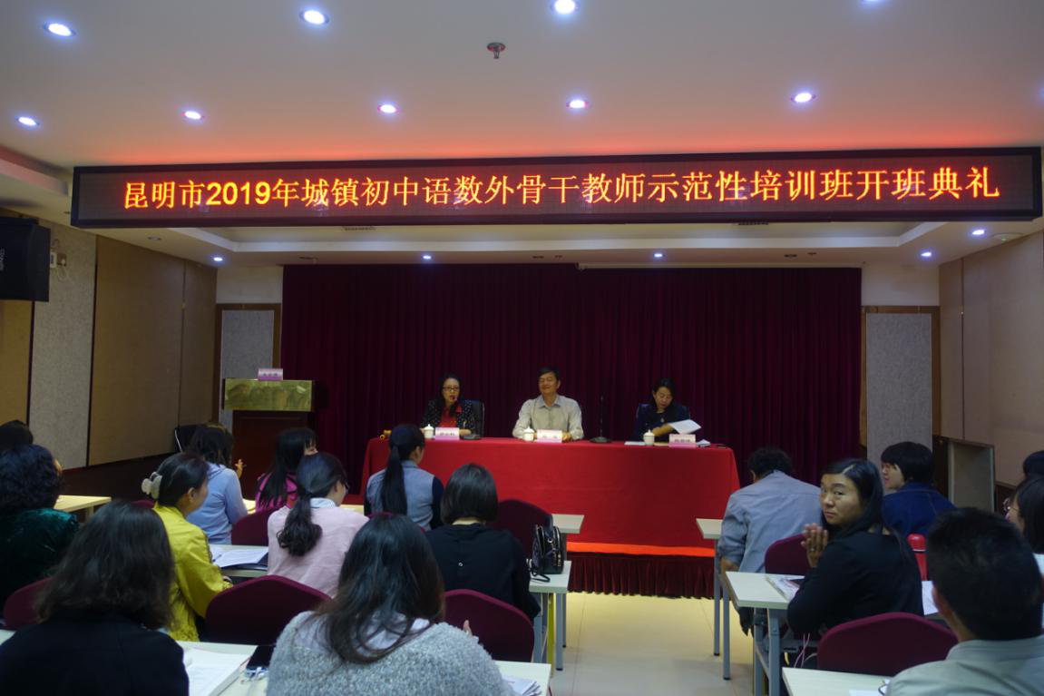 根据昆明市教育体育局与伟德国际1946bv官网成人继续教育学院的教师培训合作协议,成人继续教育学院于4月13-17日举办了昆明市2019年城镇初中语数外骨干教师示范性项目培训,来自昆明市各县区共计150名城镇初中语数外骨干教师参加此次培训。4月13日上午,主办与承办双方在莲花宾馆一楼报告厅举行开班典礼,昆明市教育体育局师训处处长杨昭晖,成人继续教育学院党委书记马煜、副院长郭云聪,成教学院培训部全体教师及参训学员参加开班典礼。典礼由郭云聪副院长主持。