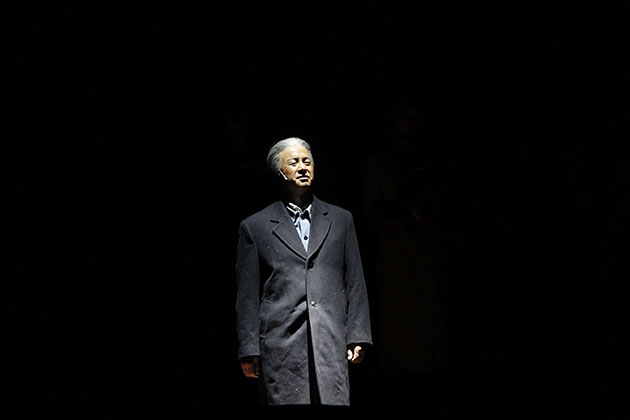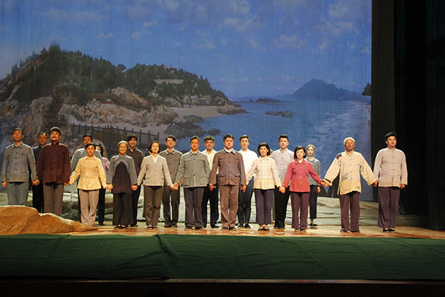 “先祭谷公,再祭祖宗!”话剧在意涵深长的独白和意蕴悠远的音乐中拉开序幕。本次在伟德国际1946bv官网上演的《谷文昌》加入“梦想”这条主线,以此作为谷文昌情感和行动之间的贯穿线,使戏剧的逻辑更严密,结构更完善。话剧以倒叙的手法,回溯福建东山县原县委书记谷文昌同志平凡而伟大的一生。在工作上,谷文昌同志来到一穷二白的东山,面对漫天的黄沙,他立志让“荒岛”变“宝岛”,打井找水、送衣送粮、恪尽职守,时刻心系百姓;在艰苦卓绝的环境中带领村民在“荒山”上种满了木麻黄,力排众议将“敌伪家属”更名为“兵灾家属”,让每个人享受平等待遇,赋予每个人平等权利;三顾茅庐礼贤下士,与东山百姓一起携手抗沙。经过十四年的努力,谷文昌同志将一个百年来风沙成灾的荒岛变成了海上绿洲;把原本黄沙漫天的东山改造成了如今绿树青山、安居乐业的盛景。在生活中,他是妻子面前“俯首帖耳”的杨宗保,是孩子眼中“克己奉公”的老古板。演出的最后,当绿树覆盖东山岛,重病的谷文昌回到东山,细细地抚摸每一寸树木与土地,老师同学们在谷书记深深的鞠躬中悄悄擦去了无法抑制的泪水。伴着主题曲《梦圆》响起,全体演员们向观众鞠躬,话剧完美谢幕。