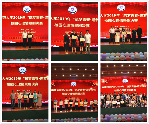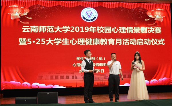 为深入学习习近平新时代中国特色社会主义思想,全面贯彻落实全国教育大会、全国高校思想政治工作会议精神,不断提升我校心理育人工作质量,促进大学生身心健康发展,我校学生工作部(处)心理健康教育咨询中心于5月9日下午在明德5号楼演播厅举行了“筑梦青春·追梦成长”校园心理情景剧决赛暨5·25大学生心理健康教育月活动启动仪式,各学院副书记、心理辅导员、学生代表共600余人参与了本次活动。学生处杨卫国处长宣布2019年校园心理情景剧决赛暨5·25大学生心理健康教育月活动开始。云南大学心理健康咨询服务中心主任滕燕老师、昆明理工大学学生心理健康教育与咨询中心主任朱博老师、云南财经大学心理教育与咨询中心主任高建昆老师、伟德国际1946bv官网教育科学与伟德国际victor1946博士生导师陶云教授、马克思主义学院张旭教授、研究生院研究生工作部副部长向泰老师、校团委副书记郑伟俊老师、数学学院副书记朱林老师担任本次比赛的评委。