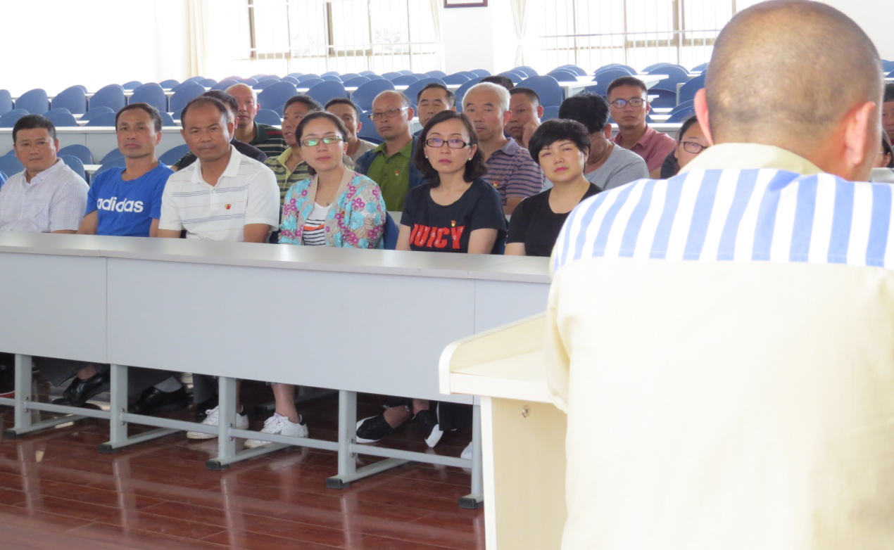 在参观完监舍和学习教育场所后,参观人员来到报告厅,现场听取了两名服刑人员的“现身说法”。两名服刑人员分别讲述了他们犯罪的心路历程,所受的惩罚,特别是讲述了受到惩罚后给亲人、家庭带来的伤害,是讲述者心中永远的痛,讲述者的自责是痛苦的,其发自内心的自责也感染到后勤产业的每一位党员领导干部。