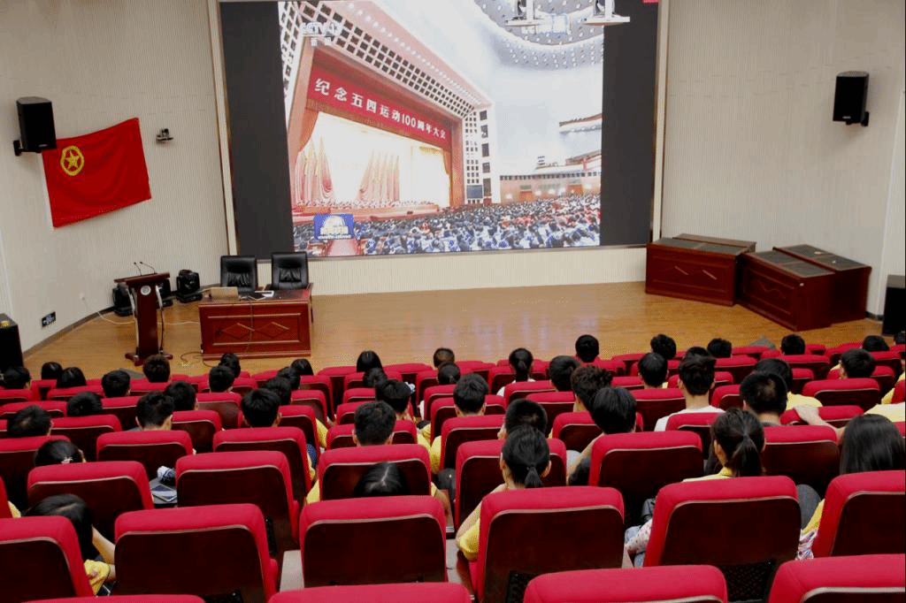 活动开始,全体师生合唱了《歌唱祖国》《我和我的祖国》等爱国歌曲,并集体观看了习近平总书记在纪念五四运动100周年大会上的重要讲话视频,重温大会盛况,学习大会精神。