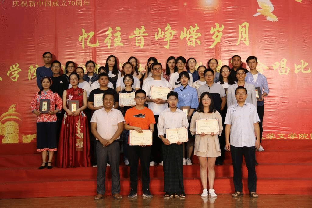 在纪念“五四”运动100周年暨庆祝新中国成立70周年之际,文学院于5月9日在呈贡主校区汇文楼Ⅲ区105报告厅举行了“歌声与微笑·忆往昔峥嵘岁月”合唱比赛。文学院党委书记毛志荣老师、党委副书记石安银老师以及学院各班班主任出席并担任合唱比赛评委。