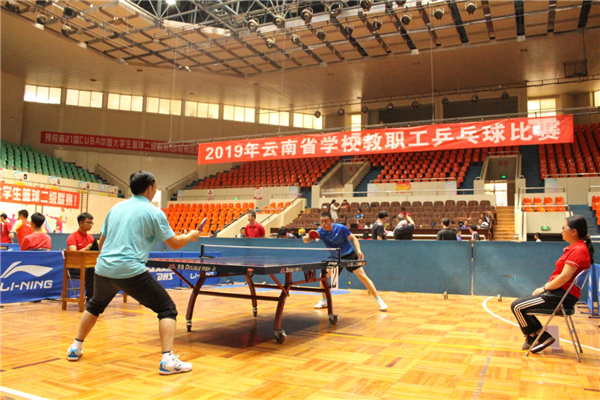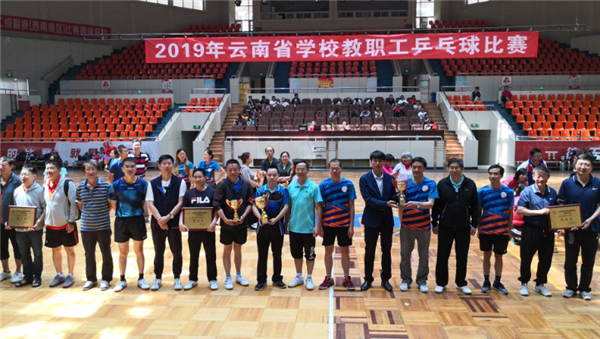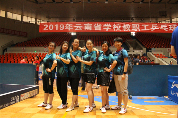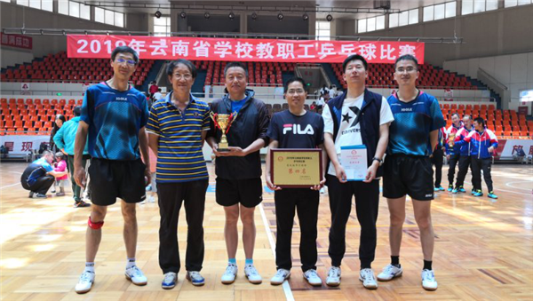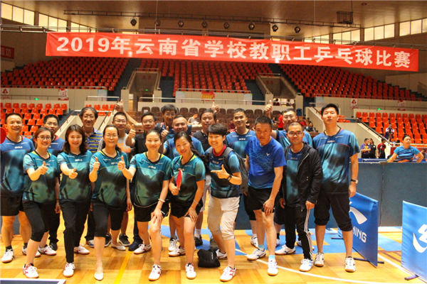 2019年5月9日至10日,伟德国际1946bv官网教职工乒乓球队在云南省教育厅主办的“2019年云南省学校教职工乒乓球比赛”中喜获佳绩,其中男子一队获得高校组男子组团体第三名,男子二队获得第四名,女子组获得团体第五名。张杰老师获得男子单打第四名,靳峰、王永华老师获男子双打第五名,张杰、林勇跃老师获得男子双打第七名。