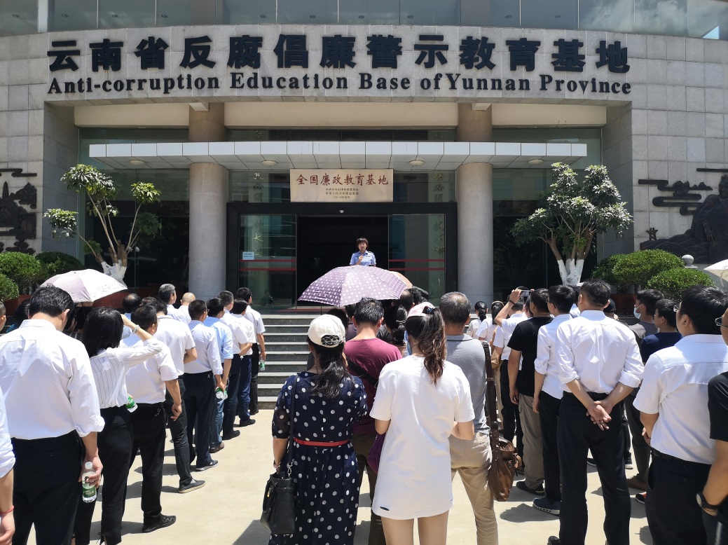 为进一步筑牢党员干部拒腐防变思想道德防线,教育警醒党员干部强化廉洁自律意识,严守纪律底线,充分发挥反面典型案例的警示作用,推动全面从严治党向纵深发展,积极推进校医院党风廉政建设相关工作,2019年5月21日,校医院直属党支部组织全体党员、科级以上管理干部到云南省反腐倡廉警示教育基地开展警示教育活动。