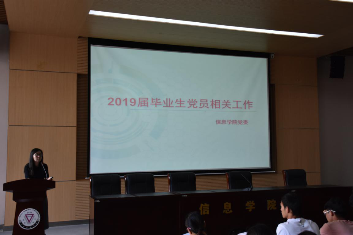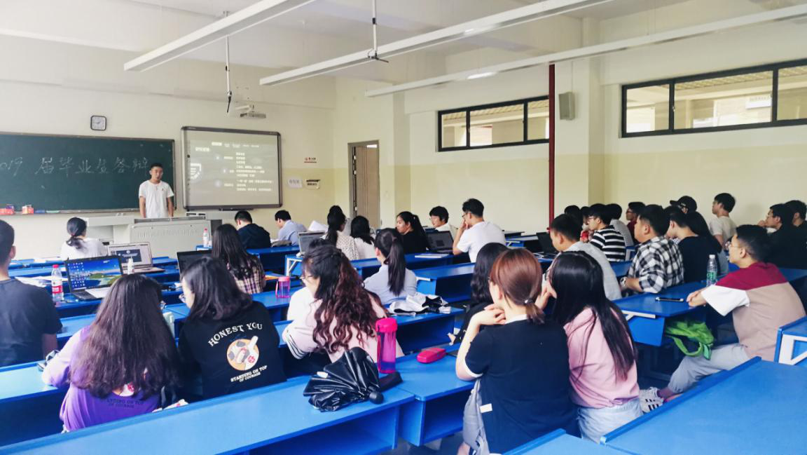 2019年5月24日上午,信息学院在睿智4号楼111报告厅召开了2019届毕业生离校工作推进会,学院党委副书记刘德鹏,辅导员蔡文华、徐旻、刘萌、陈思行,以及全体毕业生参加了此次会议。