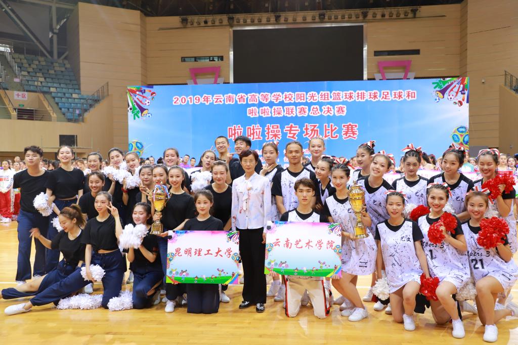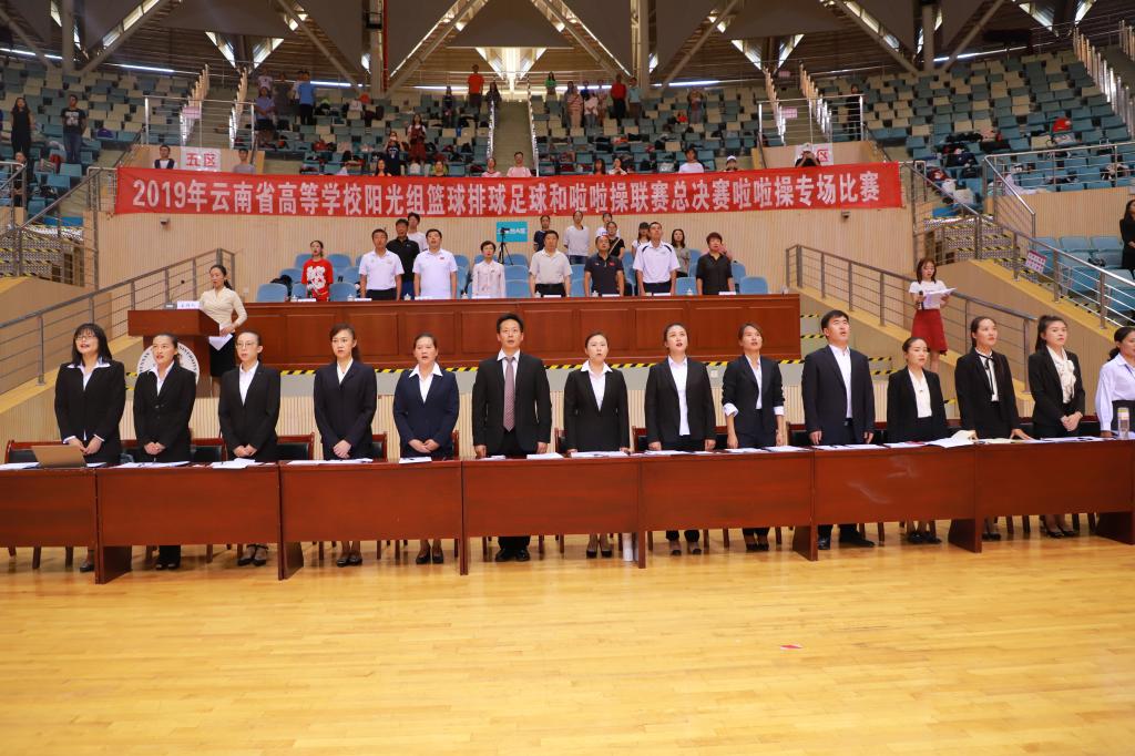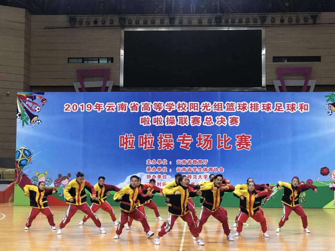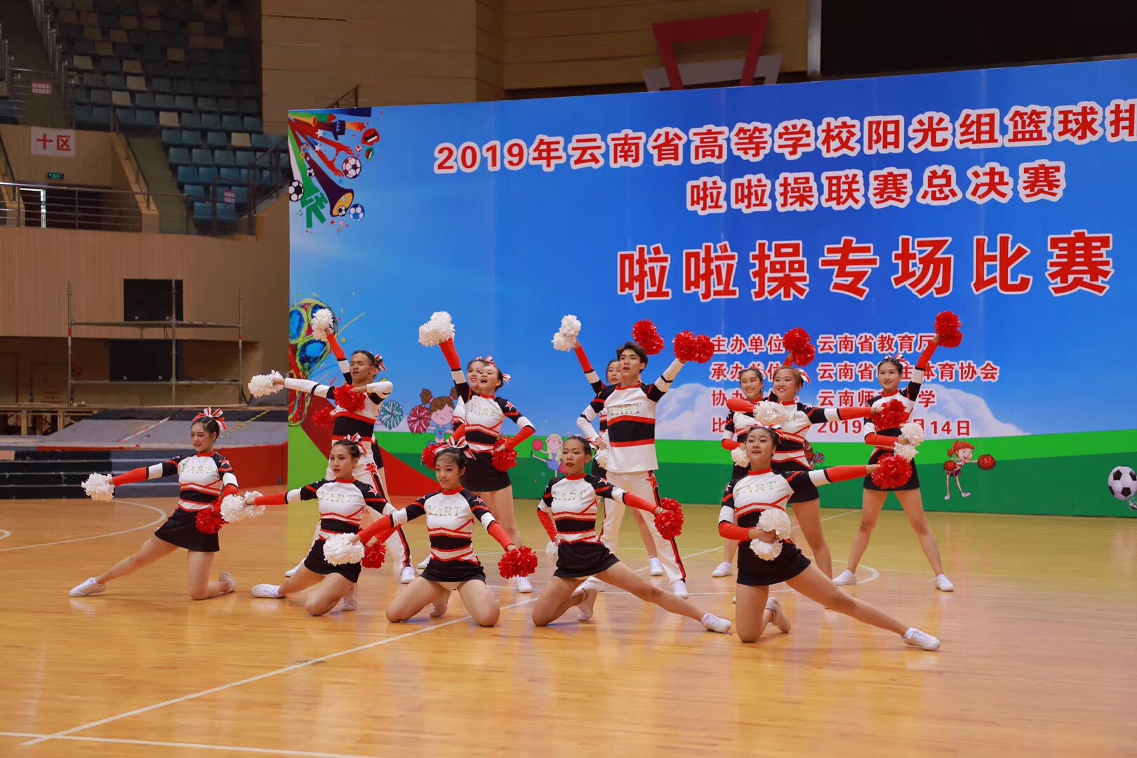 由云南省教育厅主办,云南省学生体育协会承办,伟德国际1946bv官网协办的“2019年云南省高等学校阳光组篮球排球足球和啦啦操联赛”于6月14日在我校呈贡主校区莲花体育馆举行最后的啦啦操专场比赛。