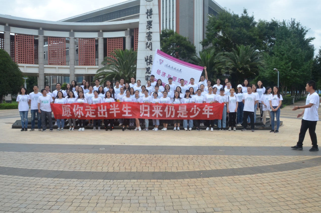毕业跑从明德一号楼门口出发,途经西区学生住宿区、三校碑、行政楼、图书馆,环绕校园一周后回到起点,行程大约6公里。沿途,学院2019届毕业生向学校团委、学生工作处、就业处、后勤保障处等部门老师献花表达感恩之情,老师们也向大家送上了美好的祝福,提出了希望。