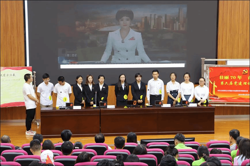为了深入学习贯彻习近平新时代中国特色社会主义思想和党的十九大精神,推进“两学一做”制度化常态化,教育和引导广大党员“不忘初心、牢记使命”,切实增强“四个意识”、坚定“四个自信”、做到“两个维护”,庆祝中国共产党成立98周年和中华人民共和国成立70周年。中共伟德国际1946bv官网旅游与地理科学学院委员会和中共伟德国际1946bv官网传媒学院委员会联合举办了“壮丽七十年 奋斗新时代”党建理论知识竞赛,两个学院的17个党支部参加了竞赛。