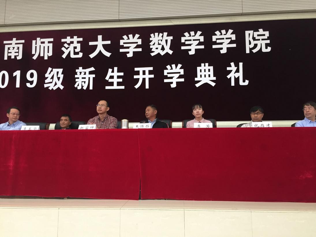 金秋时节,丹桂飘香,清风徐徐,数学学院迎来了2019级新生。9月4日,数学学院在武之楼201报告厅召开2019级新生开学典礼,参加本次典礼的有学院院长王源昌,副院长赵富坤、李芳、王天志,教师代表李玉华老师、化存才老师、张华老师、陈绍雄老师,新生班主任和辅导员,在校生学生代表和2019级的全体新生。典礼有5项议程,由夏磊老师主持。