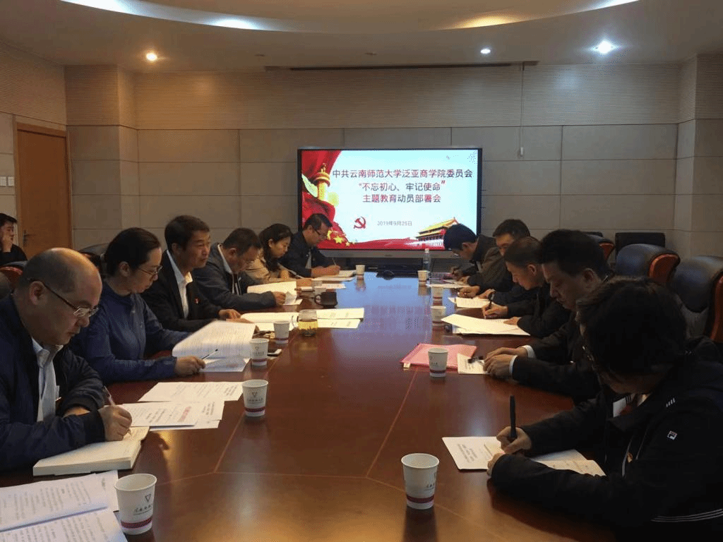 根据中共伟德国际1946bv官网党委开展“不忘初心、牢记使命”主题教育的工作部署和要求,在校党委主题教育第十一指导组的指导下,泛亚商学院于9月25日上午在学院109会议室召开了“不忘初心、牢记使命”主题教育动员部署会。校党委“不忘初心、牢记使命”主题教育第十一指导组全体成员、学院全体党委委员、全体党支部书记、教职工党员代表以及学生党员代表参加了会议。会议由学院党委书记陈玉林主持。