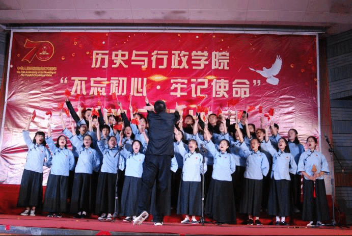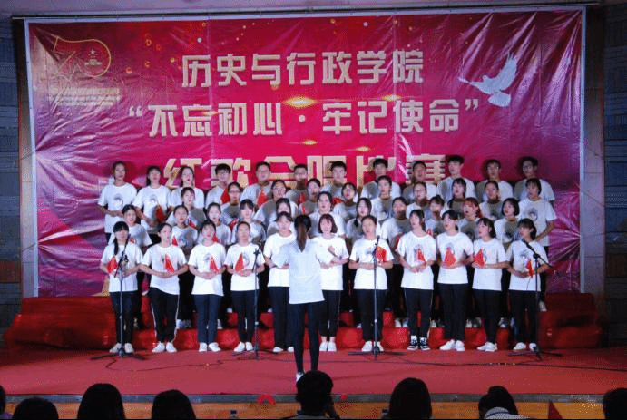 9月27号晚,我校历史与行政学院在汇文三区105报告厅举行了“不忘初心、牢记使命”红歌合唱比赛。学院党政领导班子、各班班主任出席,2018级、2019级的600余同学参加了此次合唱比赛,用歌声献礼新中国70华诞。