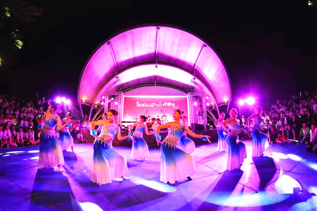 晚上六点半,忠信学校“孔子节礼乐祭晚会”在小贝壳广场举行,忠信学生用一段段劲歌热舞展现了青春的活力,我校学生也带来了《梨花又开放》+《青春舞曲》的小合唱,以及清新唯美的傣族舞蹈《月光下的凤尾竹》,将晚会推向高潮,两校师生的友谊在歌舞中又一次凝聚升华。