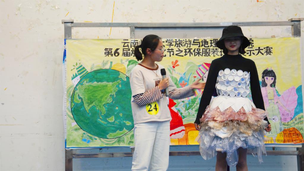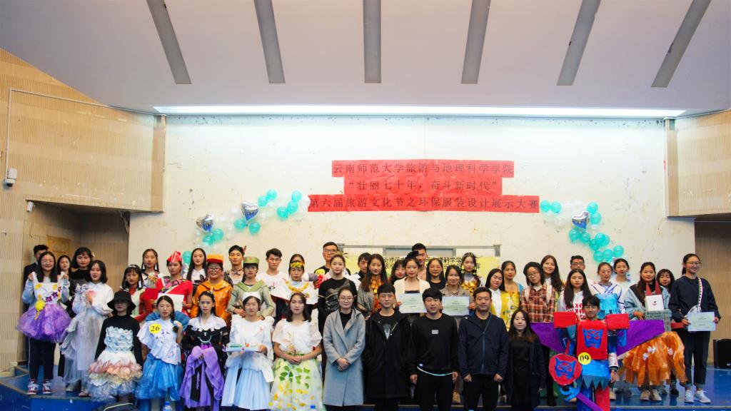 为培养学生低碳环保和创新意识,营造良好的校园文化氛围,旅游与地理科学学院于2019年10月17日下午在呈贡主校区汇学Ⅱ区105报告厅举办了第六届旅游文化节之环保服装设计展示大赛。伟德国际1946bv官网旅游管理专业(空乘方向)王怡予老师、何腾坤老师,旅地学院辅导员潘晓娇老师、李兴莉老师、刘红军老师,班主任苏斌老师担任评委,来自旅地学院、其他学院和社团代表队共计300余人参加了此次比赛。