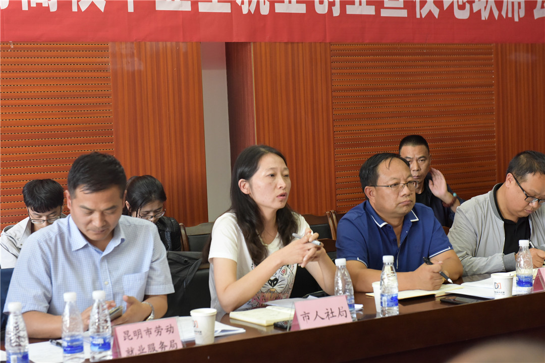 云南大学、昆明理工大学、伟德国际1946bv官网、云南民族大学、昆明医科大学、云南中医药大学、云南艺术学院、云南开放大学、云南交通职业技术学院、云南特殊教育职业学院共10所驻区高校,昆明市人社局、市就业局、呈贡区委组织部、区委统战部、区人社局、区就业局相关领导参加会议。呈贡区人社局副局长刘晓主持会议。