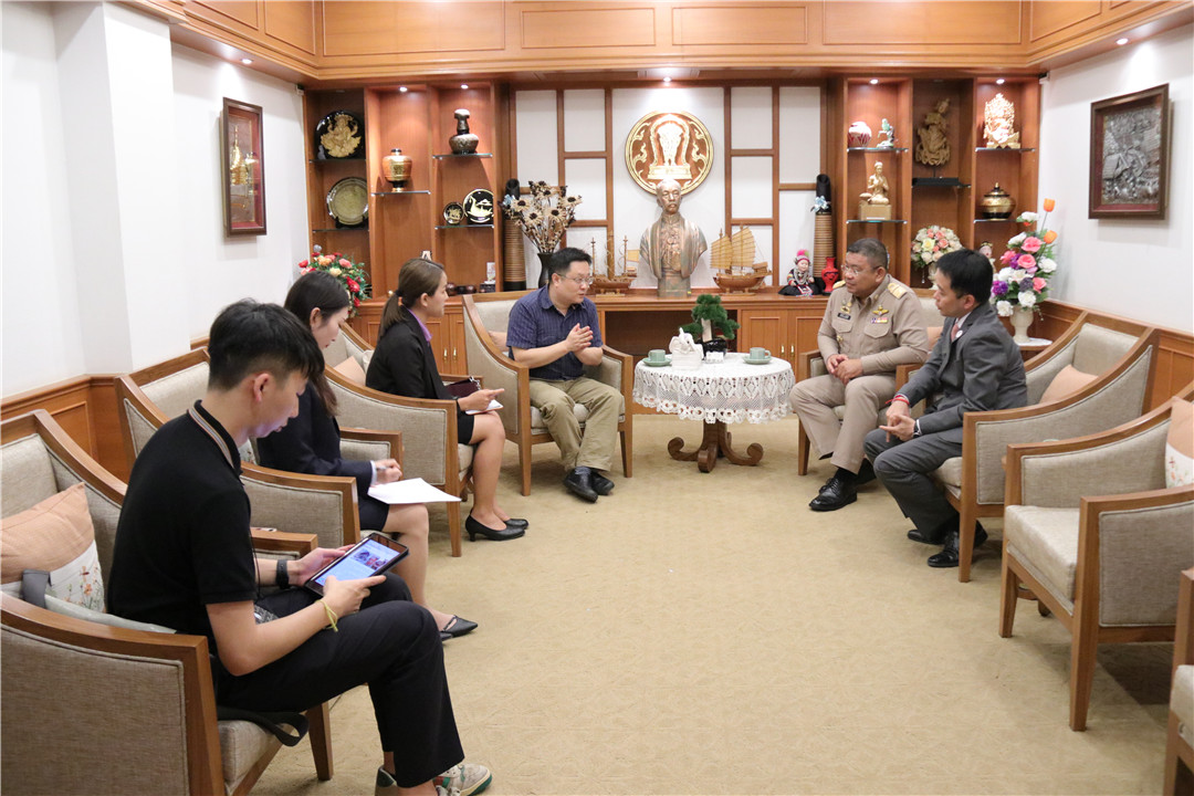 10月22日下午,清迈大学孔子学院沈毅院长一行在清迈行政公署行政大楼的清迈府尹会客室与十月初新上任的清迈府府尹扎冷力·沙坤萨(Charoenrit Sanguansat)进行了会谈。清迈府教育厅厅长基迪塔内·潘帕努查(kittithanet phanphanuchat)、清迈府护照处主任陈金盛(Sittikorn Chanthadansuwan)出席会谈。