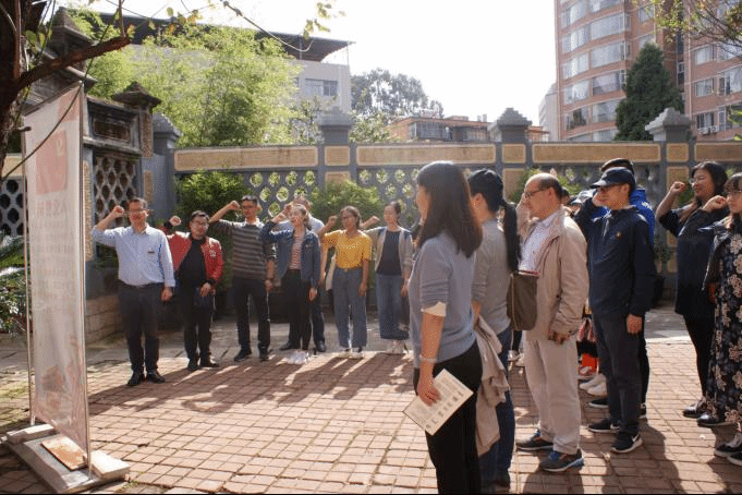 在云南起义纪念馆——卢汉公馆,学院党委副书记周宁讲述了著名抗日爱国将领卢汉领导云南起义、解放云南的历史,指出卢汉领导的云南起义,和平解放了云南,让云南乃至西南地区数以万计的军民免遭战争涂炭。全体党员参观了纪念馆内的实物陈列和图片展。通过讲解和参观,党员们对云南解放的历史和新中国史有了更深入的了解。