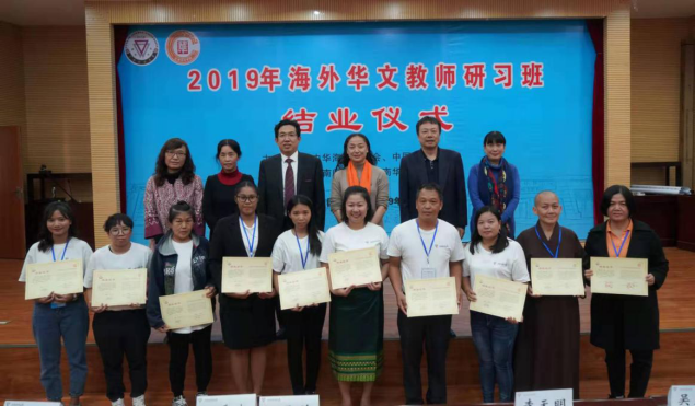 2019年10月29日下午,由中华海外联谊会、国务院侨办主办,云南华文学院承办的“2019年海外华文教师研习班”圆满结业。结业仪式在同析2号楼311报告厅举行,来自泰国、越南、缅甸、老挝、印度尼西亚、菲律宾6个国家31所华文学校、华文教育机构的参训华文教师出席结业仪式。