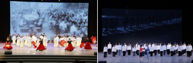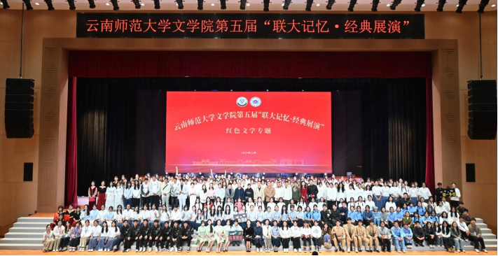 为弘扬中华优秀传统文化,融合思政教育与西南联大精神传承,11月13日,文学院举办第五届“联大记忆·经典展演”活动。2025级10个名师班级与2个学生社团同台献艺,学院600余名师生共同观看了这场以“红色文学”为主题的演出。