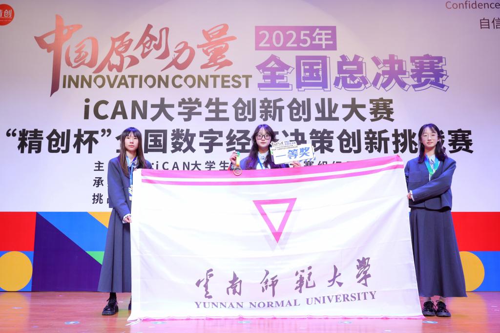 11月23日,iCAN大学生“精创杯”全国数字经济决策创新挑战大赛全国总决赛在四川绵阳师范学院举行。我校2023级数字经济专业苏艳、沈晰丹、张晏榕组成的“破晓”团队在陈晔婷老师指导下获全国一等奖、云南省一等奖。
