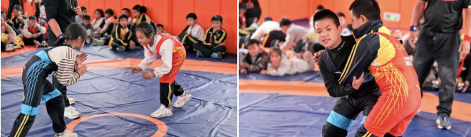 项目落地以来,变化在悄然发生。学校的训练室里回响着教练的口令、孩子们的呐喊与垫子上的翻滚声。从最基本的抱腰、过胸摔,到复杂的战术组合,这群零基础的乡村少年,用日复一日的汗水,将摔跤这项充满力量与智慧的运动,从陌生变为热爱。